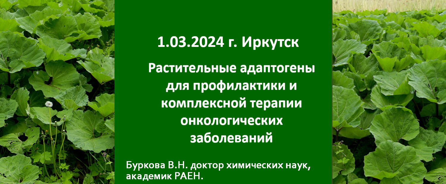 1 марта с докладом на тему «Растительные адаптогены в комплексной терапии и профилактике онкологических заболеваний» перед врачами Иркутска выступит Буркова Валентина Николаевна, доктор химических наук, академик РАЕН.