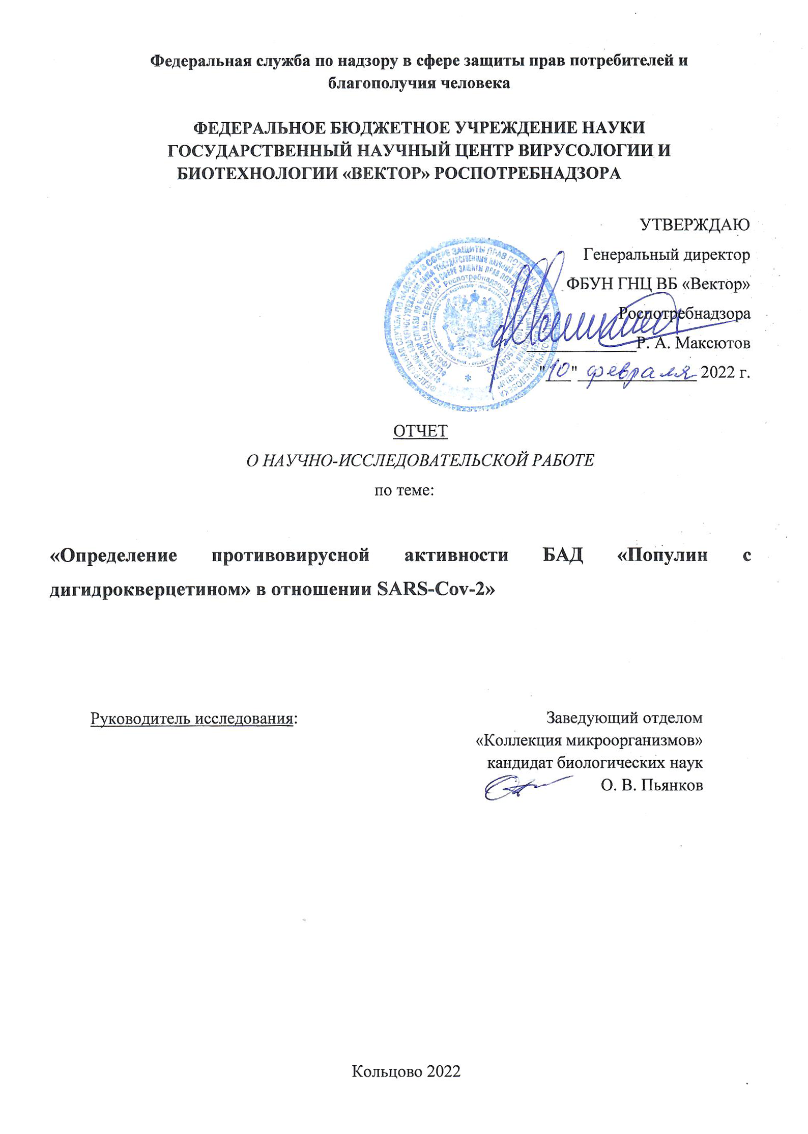 Противовирусная активность БАД «Популин с дигидрокверцетином» производства ООО «Биолит» подтверждена ВБ «Вектор»